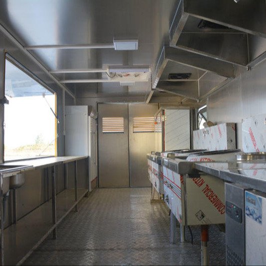 餐车采用东风四驱越野底盘DFV2163GP6DJ二类底盘改装而成。整车可以分为底盘、车厢、厨具、电气系统、供水供油、净水等六大子系统。车厢内部设置有一台多功能智能蒸箱(简称蒸箱);两套储物柜;一套吊柜;一套调理台;一套排油烟机、一套净水装置等。该车作业能力为1小时内完成150-200人份主、副热食加工;携带200套餐盘(不锈钢餐盘、不锈钢汤碗、不锈钢餐具等),适用于在野外等特殊条件下的饮食保障。