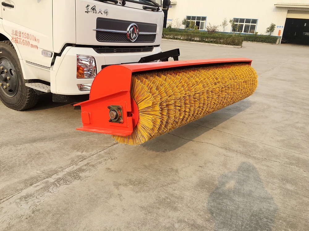 扫雪滚刷在我们的生活中应用广泛,其主要功能是利用扫雪刷旋转形成的离心作用力和滚刷倾斜角,将浮雪甩向马路一侧,避免浮雪板结、冻结,实现快速清雪,疏导城市交通、机场跑道和高速公路等场所。一、工作原理及特点:扫雪辊刷借助汽车或装载机前进的动力,通过操纵机构各按钮,将雪刷角度调整到倾斜30°-35°位置后,利用升降装置升降高度,以及行车速度将积雪推至道边。可与多种汽车底盘配套使用,采用除雪铲、扫雪滚刷可互换的快速连接机构,扫雪滚刷与车辆的安装及拆卸简单方便,作业安全可靠;在除雪作业中,扫雪滚刷随路面横坡坡度,自动调节功能二、除雪滚刷用途:
